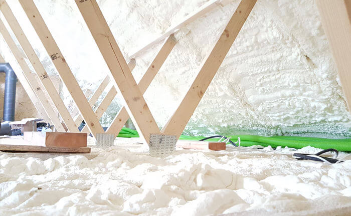 Zastosowanie piany do izolacji termicznej odpowiada za jeszcze większą oszczędność energii a co za tym idzie, oszczędności budżetu na koszty ogrzewania domu. Piana PUR nakładana jest metodą natryskową pomiędzy konstrukcję szkieletową, dzięki temu całkowicie eliminujemy ryzyko powstawania pustych przestrzenia oraz mostków termicznych. Dodatkową zaletą piany otwarto komórkowej jest fakt, że pracuje i amortyzuje każde, nawet mikroskopijne ruchy ścian budynku.