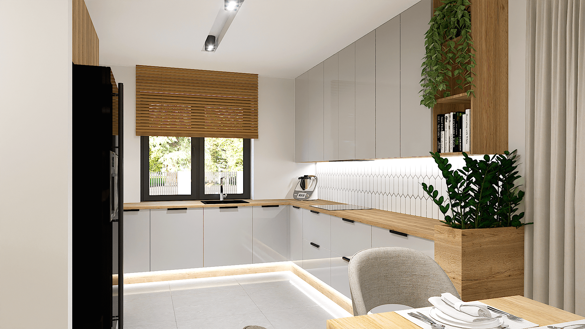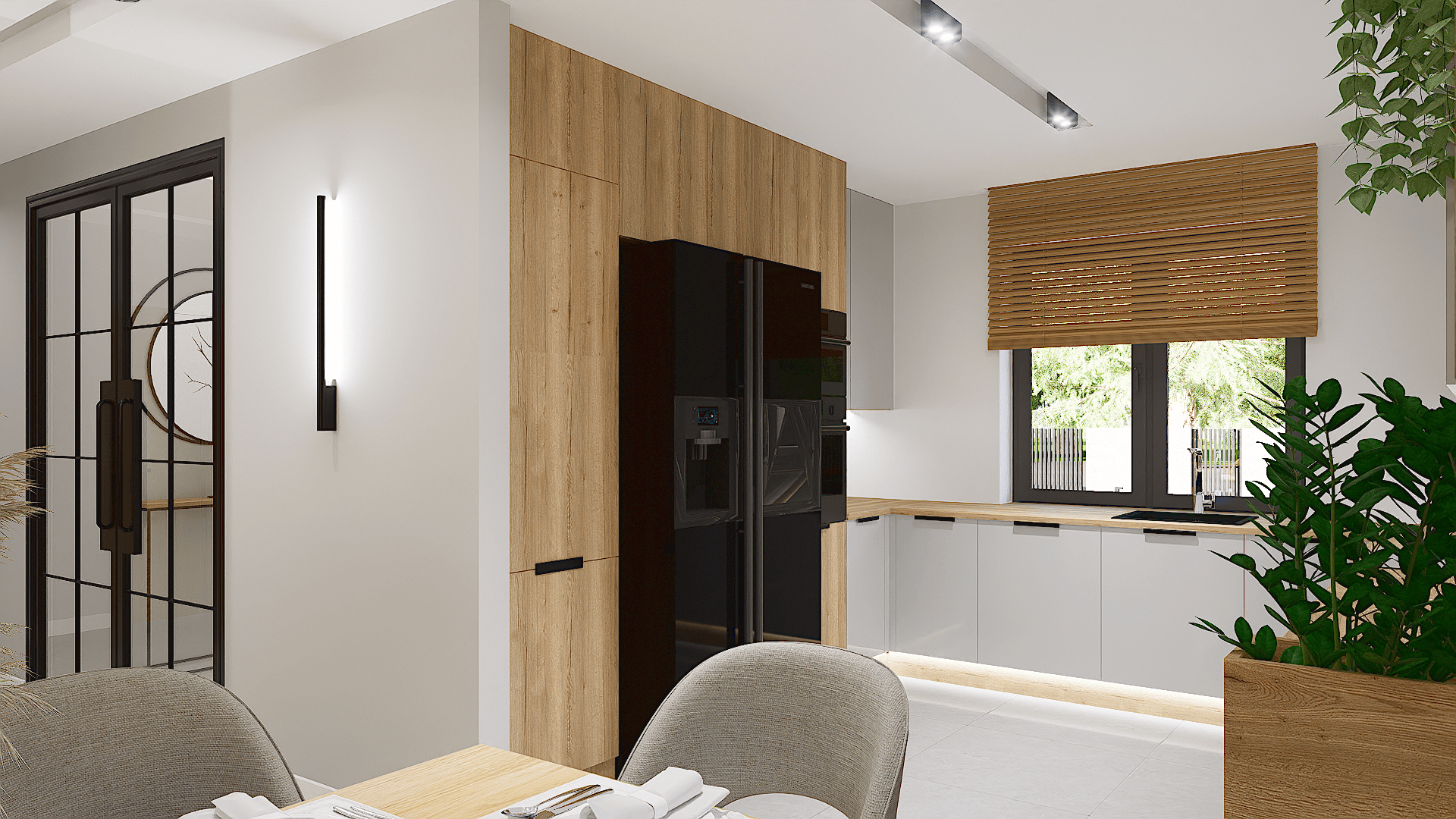 W domu znajduje się wygodna łazienka z miejscem na wannę, pomieszczenie gospodarcze, które pomieści wszystkie niezbędne sprzęty oraz przestronny wiatrołap z miejscem na pojemną szafę.