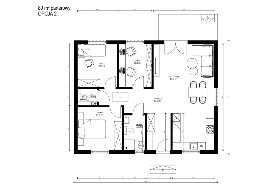 | Razem | 80,00 m² |