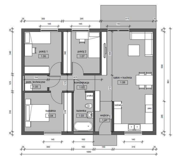 Jest to idealny projekt dla trzy lub czteroosobowej rodziny.