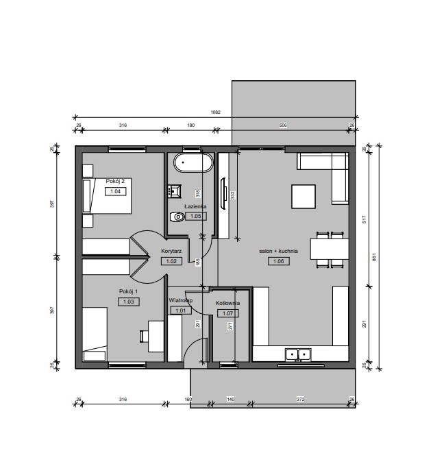 | 1.06 | Salon + kuchnia 37,01 m² |