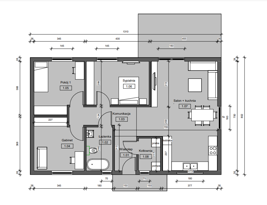 Nasze biuro projektowe pomoże Ci dobrać najbardziej optymalny układ pomieszczeń.